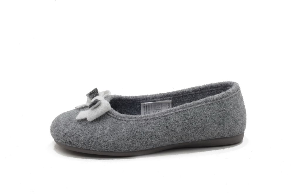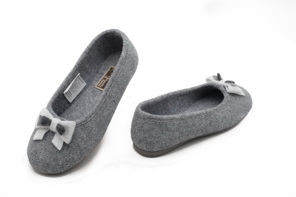 Mięciutkie i ciepłe papcie domowe w kolorze szarym. Na nosku kokardka. Produkt niemiecki.