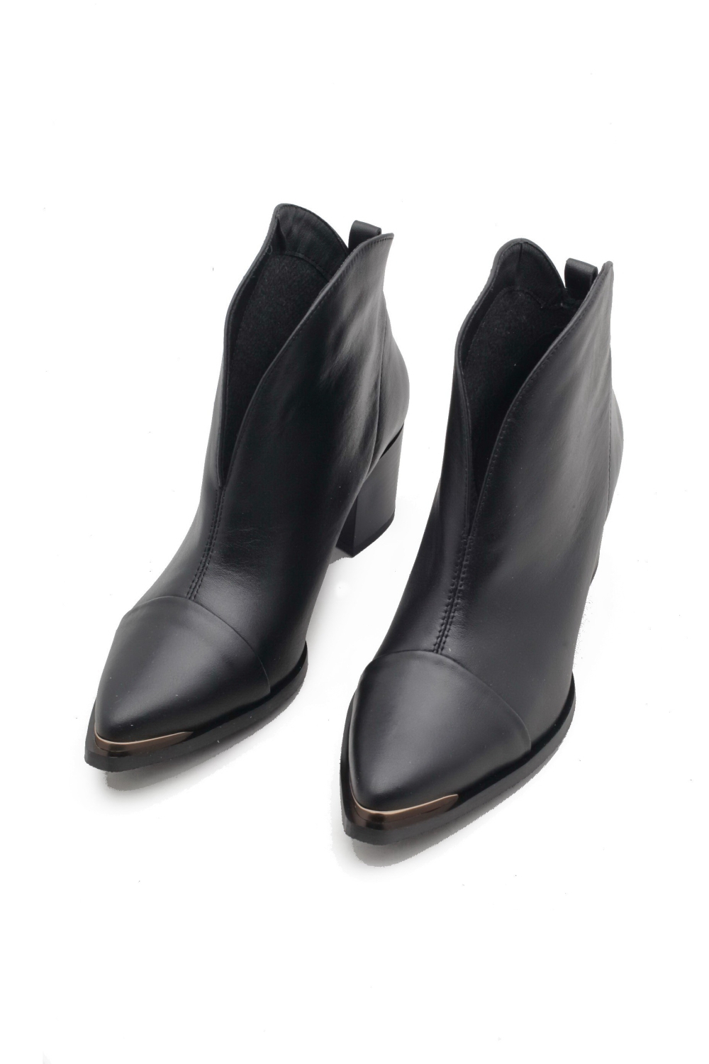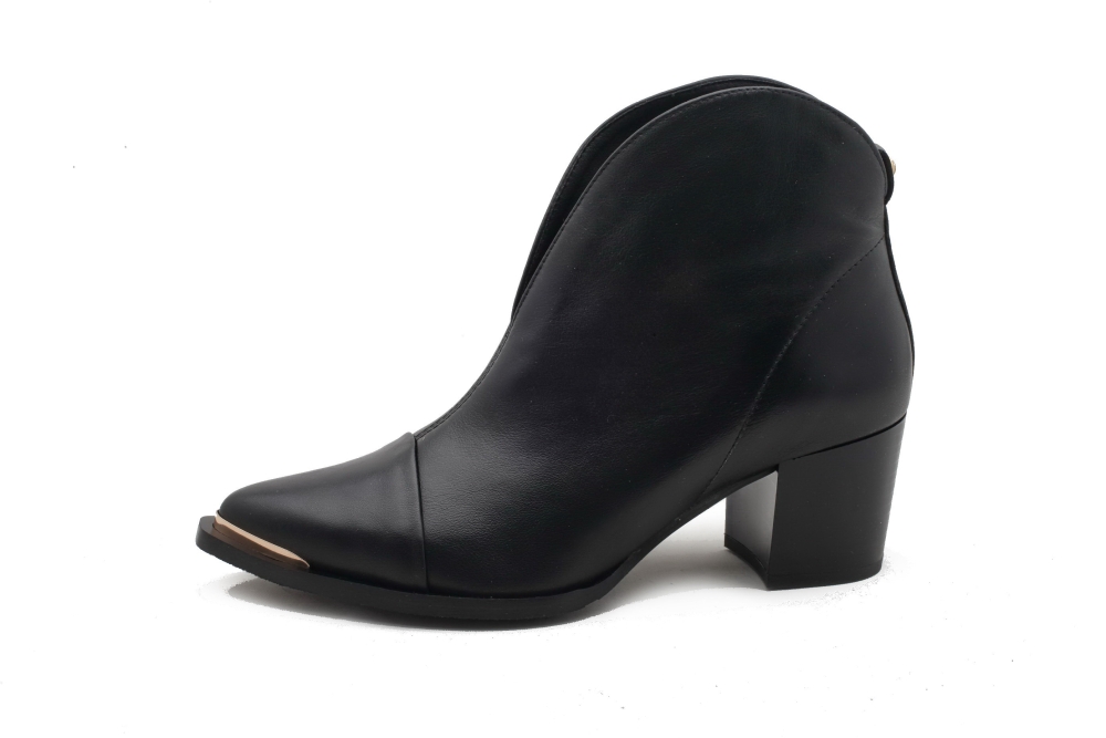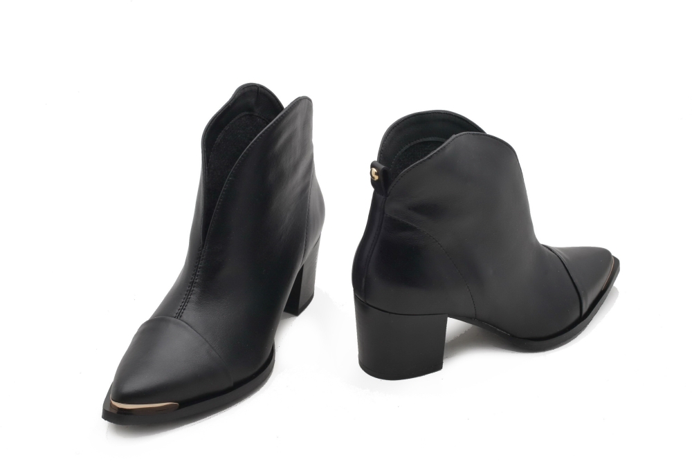 Cholewka wykonana ze skóry naturalnej w kolorze czarnym, wnętrze delikatnie ocieplone. Obuwie wsuwane, bez zamka. Nosek odcięty, obcas o wysokości 6 cm. Do pielęgnacji zalecany balsam do skór delikatnych w kolorze obuwia lub neutralnym. Tęgość G.