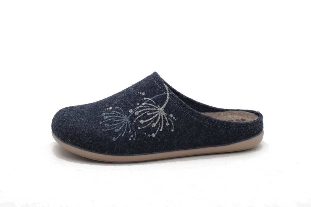 Papcie domowe z zakrytymi palcami w kolorze granatowym. Wkładka wyjmowana. Produkt polski.