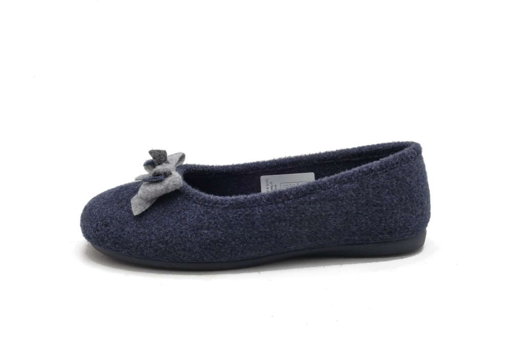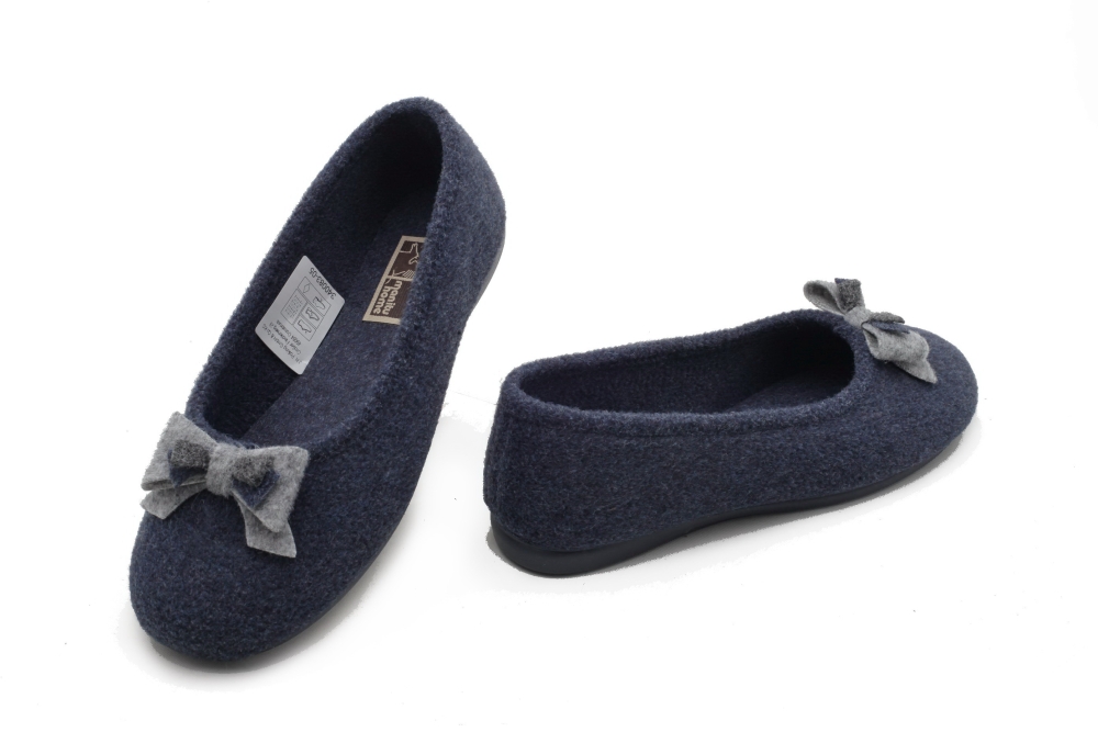 Mięciutkie i ciepłe papcie domowe w kolorze granatowym. Na nosku kokardka. Produkt niemiecki.