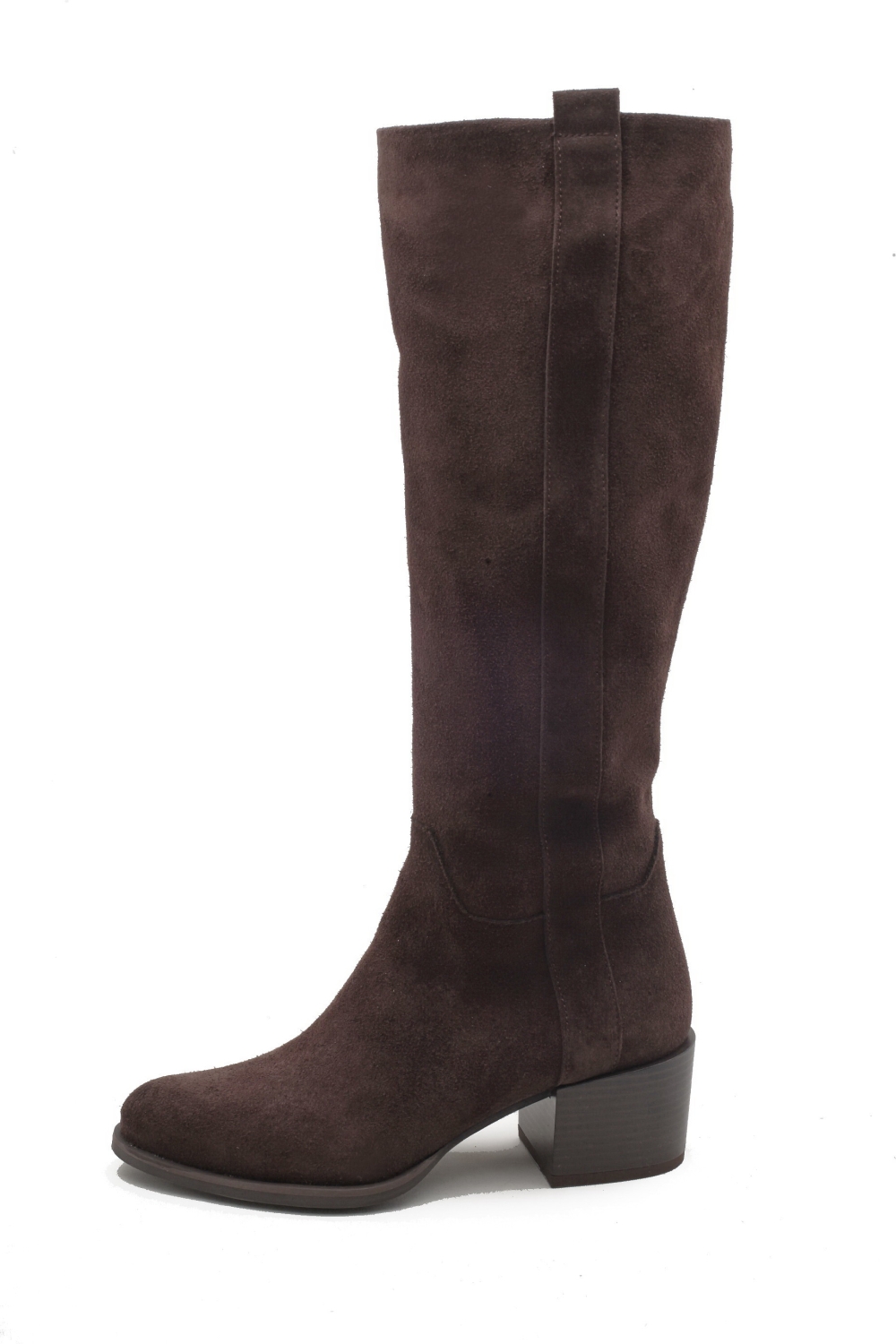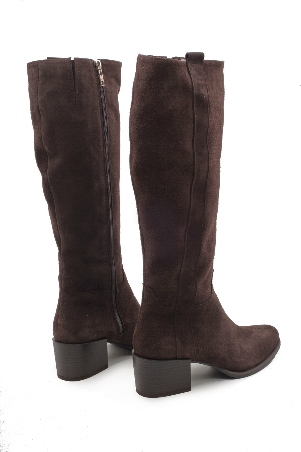 Cholewka wykonana z naturalnej skóry zamszowej w kolorze gorzkiej czekolady. Nosek lekko wydłużony, obcas szerszy stabilny o wysokości5,5 cm nieobleczony skórą. Od wewnętrznej strony wszyty zamek. Całkowita długość cholewki39 cm. Do pielęgnacji zalecanyimpregnat do obuwiaw kolorze neutralnym. Tęgość G.Produkt polski.