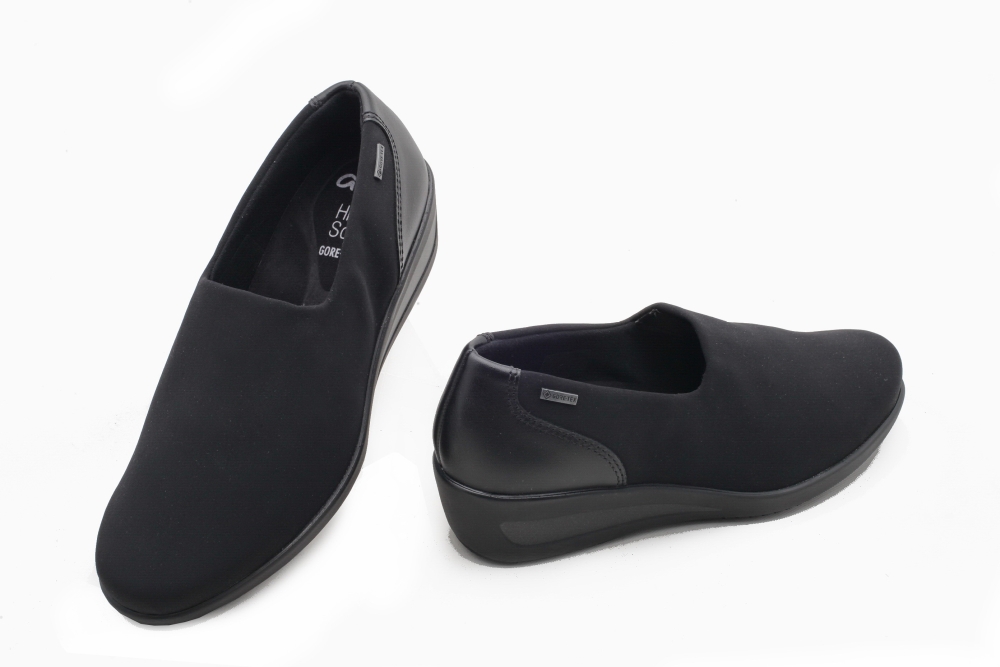 Obuwie wysoko zabudowane, wykonane z elastycznej tkaniny z membraną GoreTex. Wkładka profilowana, wyjmowana. Obuwie na klinie o wysokości 4 cm. Do pielęgnacji zalecany impregnat do obuwia w kolorze neutralnym. Produkt niemiecki. Uwaga !!! Obuwie dostępne w rozmiarach połówkowych.