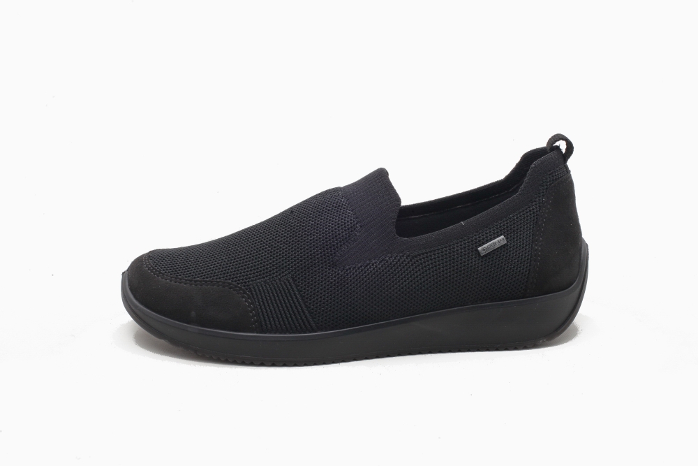 Obuwie wysoko zabudowane, wykonane z elastycznej tkaniny z membraną GoreTex. Wkładka profilowana, wyjmowana. Obuwie na klinie o wysokości2 cm. Do pielęgnacji zalecany impregnat do obuwia w kolorze neutralnym. Produkt niemiecki. Uwaga !!! Obuwie dostępne w rozmiarach połówkowych.