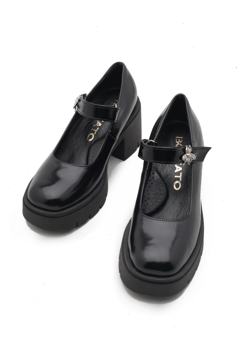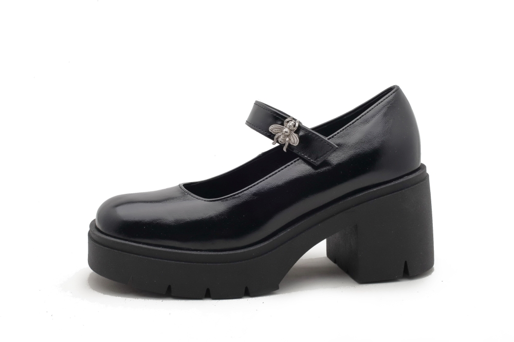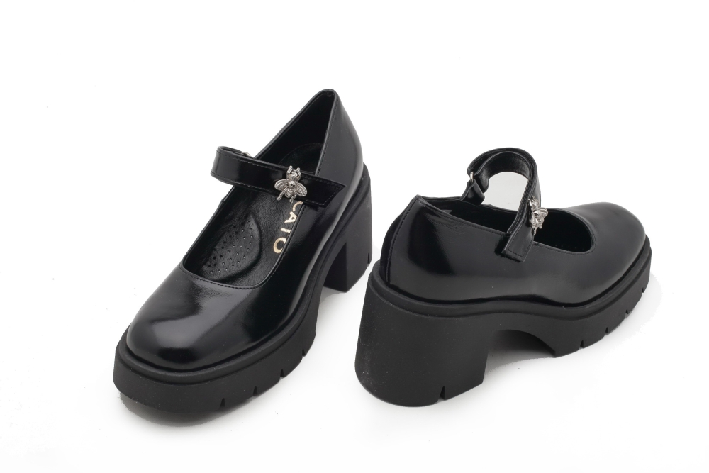 Cholewka oraz wkładka skóra naturalna. Klasyczne półbutyw kolorze czarnym z zaokrąglonym noskiem oraz zapięciem na pasek ze sprzączką biegnący przez podbicie. Obcas o wysokości7 cm. Spody grube, lane.Tęgość G. Do pielęgnacji zalecany tłuszcz do skór w kolorze neutralnym. Produkt polski.