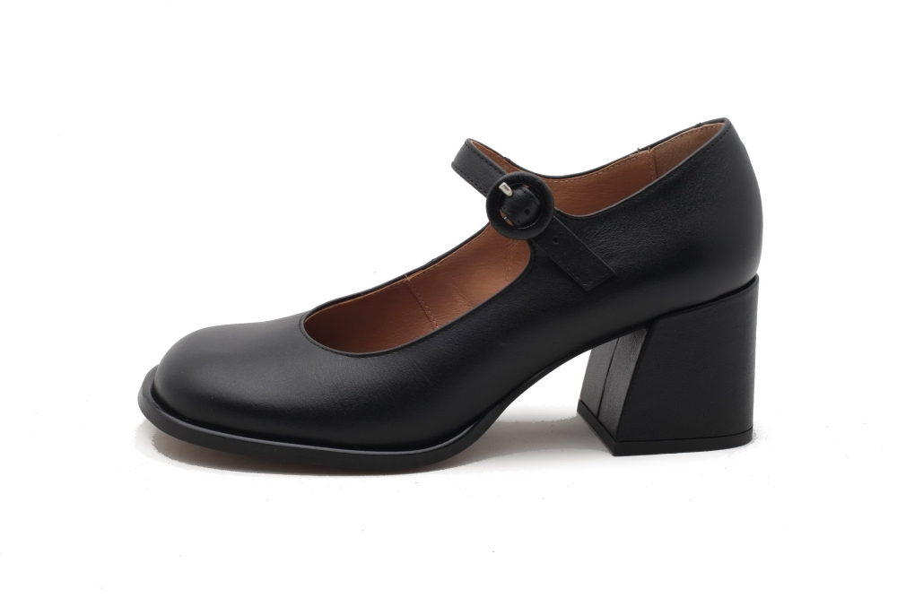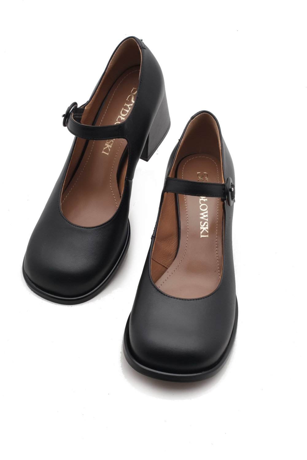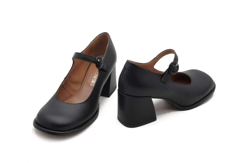 Cholewka oraz wkładka skóra naturalna. Klasyczne półbutyz zaokrąglonym noskiem oraz zapięciem na pasek ze sprzączką biegnący przez podbicie. Obcas o wysokości 6,5 cm. Tęgość G. Do pielęgnacji zalecany tłuszcz do skór w kolorze neutralnym. Produkt polski.