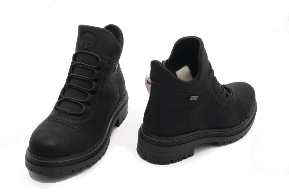 Cholewka w kolorzeczarnym, zapinane na zamek. Obuwie ocieplone miękkim futerkiem, posiada membranę RiekerTex. Spody grube, lane, antypoślizgowe. Do pielęgnacji zalecanyimpregnatdo obuwia w kolorze neutralnym. Produkt niemiecko- szwajcarskiej firmy Rieker Antistress.