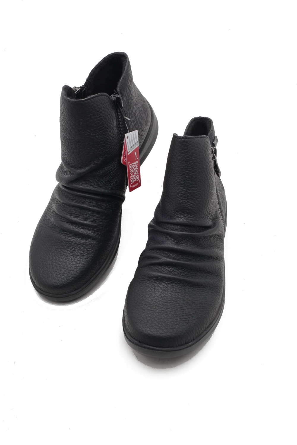 Komfortowe w użytkowaniubotki w kolorzeczarnym wykonane ze skóry naturalnej. Cholewka zapinana na dwa zamki, delikatnie pomarszczona na podbiciu.Spody lane grube, antypoślizgowe, wnętrze ocieplone miękkim futerkiem. Do konserwacji zalecanytłuszcz do obuwia w kolorze neutralnym. Produkt niemiecko-szwajcarskiej firmy Rieker Antistress.