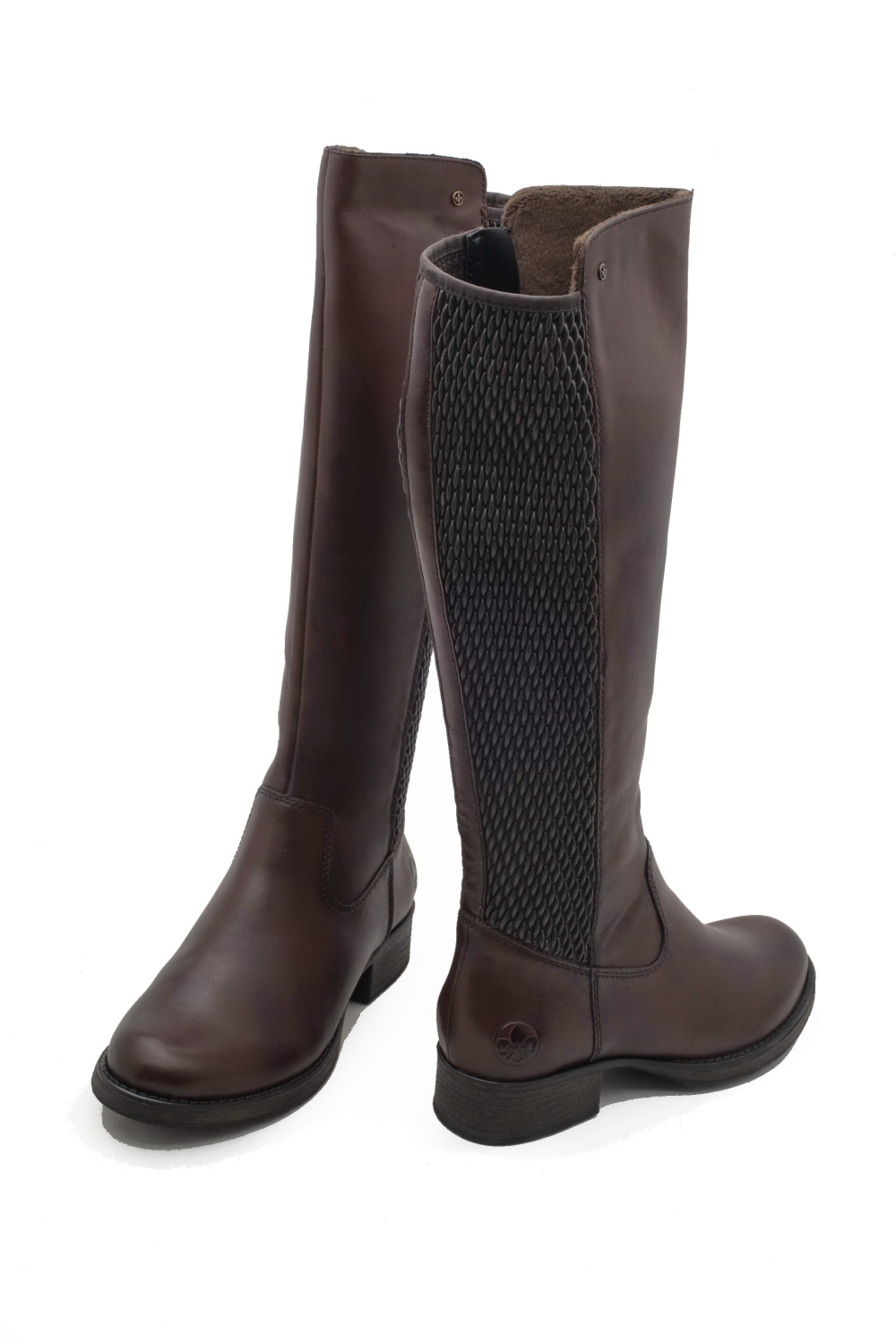 Cholewka skóra naturalna w kolorze brązowym. Wnętrze delikatnie ocieplone. Klasyczna oficerka zapinana na zamek. Z tyłu wszyty rozciągliwymateriał, przez co obuwie pasuje na tęższe łydki. Do pielęgnacji zalecany tłuszcz do skór. Produkt niemiecko- szwajcarskiej firmy Rieker Antistress.