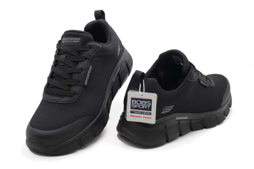 Konstrukcja SkechersBobs Sportzapewnia wyjątkowy komfort,posiada oddychającą wkładkę SkechersMemory Foamz amortyzacją. Obuwie wykonane jestw 100% z wegańskichmateriałów. Model w kolorze czarnym, sznurowany; elastyczna, lekka i przyczepna podeszwa.