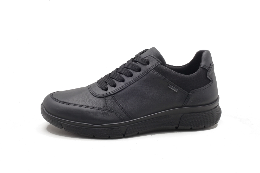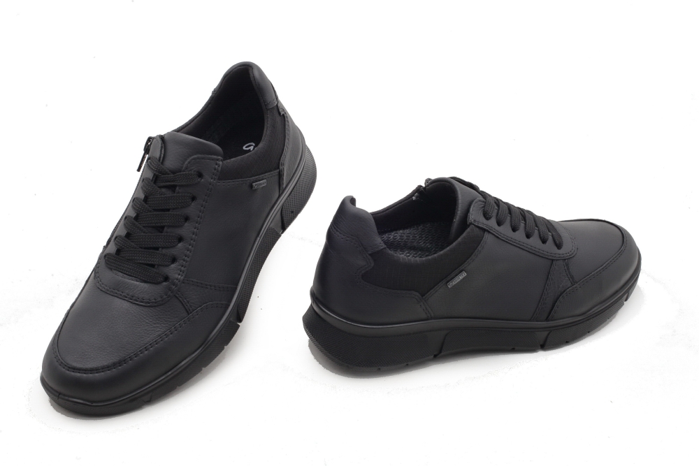 Cholewka wykonana ze skóry naturalnej w kolorze czarnym. Obuwie sznurowane oraz zapinane na zamek. Spody grube, antypoślizgowe. Wkładka profilowana, wyjmowana. Półbuty posiadają membranę GoreTex.Tęgość H. Do pielęgnacji zalecany tłuszcz do skór w kolorze neutralnym. Produkt niemiecki.
