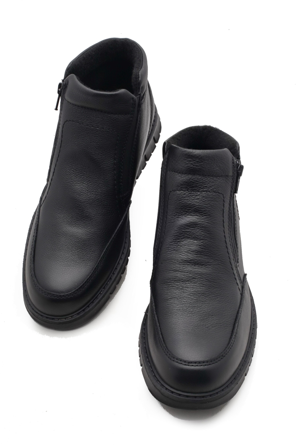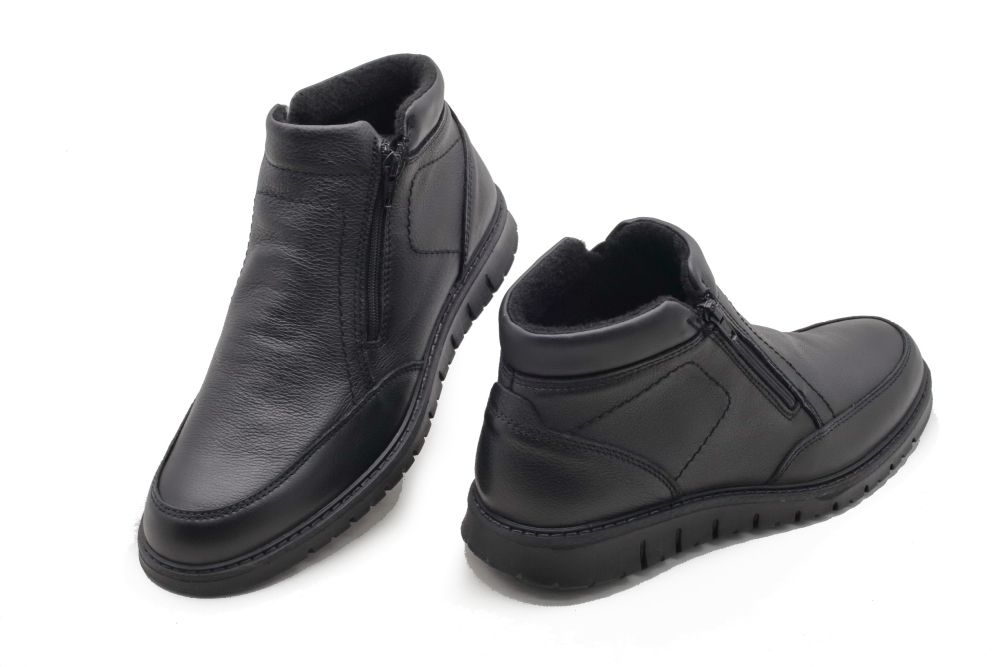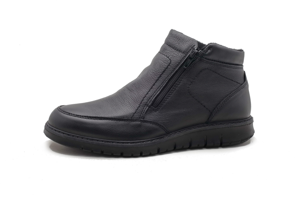Botki wykonane ze skóry naturalnej w kolorzeczarnym zapinane na zamek Wnętrze ocieplone miękkim polarem. Cholewka gładka.Do konserwacji zalecany preparat do skór naturalnych w kolorze obuwia lub neutralnym. Tęgość G. Produkt niemiecki. .