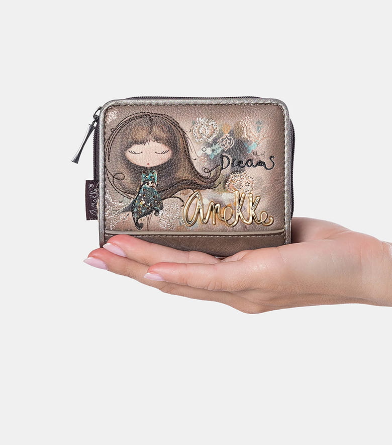 ANEKKEto hiszpańska marka toreb, torebek, plecaków i dodatków. Uwagę przyciąga oryginalny, bajkowy design: subtelne, nieco przydymione kolory, dziewczęcy styl, eleganckie wykończenie oraz dbałość o detale. Produkty Anekke to małe dzieła sztuki, które przenoszą nas do świata fantazji,w którymbohaterką jest postać ciemnowłosej dziewczynki o imieniu Anekke. Torebki zachwycają też starannym wykończeniem, doborem wysokiej jakości materiałów i dodatków. Wymiary: 10x9x3cm