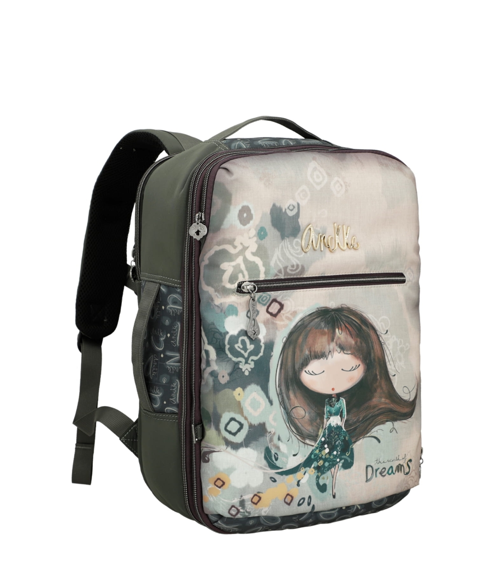 ANEKKEto hiszpańska marka toreb, torebek, plecaków i dodatków. Uwagę przyciąga oryginalny, bajkowy design: subtelne, nieco przydymione kolory, dziewczęcy styl, eleganckie wykończenie oraz dbałość o detale. Produkty Anekke to małe dzieła sztuki, które przenoszą nas do świata fantazji,w którymbohaterką jest postać ciemnowłosej dziewczynki o imieniu Anekke. Torebki zachwycają też starannym wykończeniem, doborem wysokiej jakości materiałów i dodatków. Wymiary: 29x41,5x15cm
